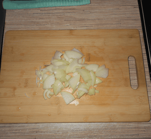 Пока маринуется рыба, вымыть и очистить одну луковицу, нарезать четвертькольцами.