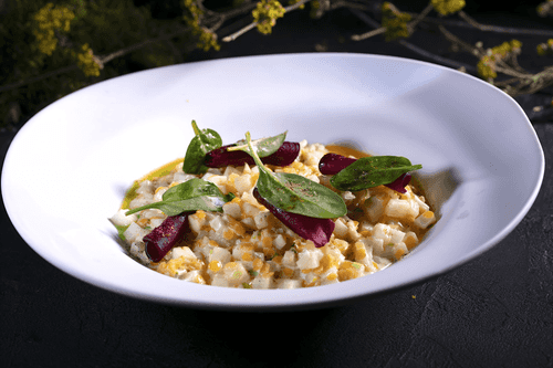 После того, как стебель сельдерея проварится в кокосовом молоке, он становится удивительно мягким, сохраняя при этом свою хрустящую текстуру. Это блюдо представлено шеф-поваром Андреем Колодяжным из ресторана «Л.Е.С.».