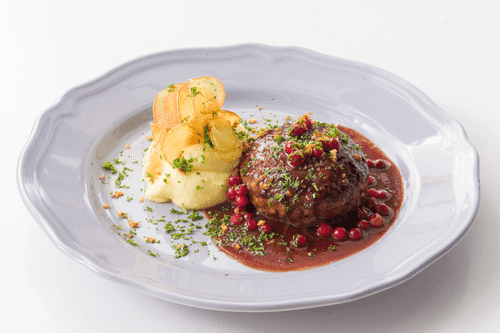 Котлеты из говядины с картофельным пюре и клюквенным соусом