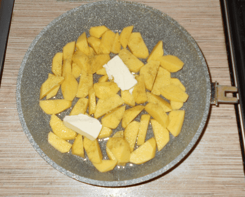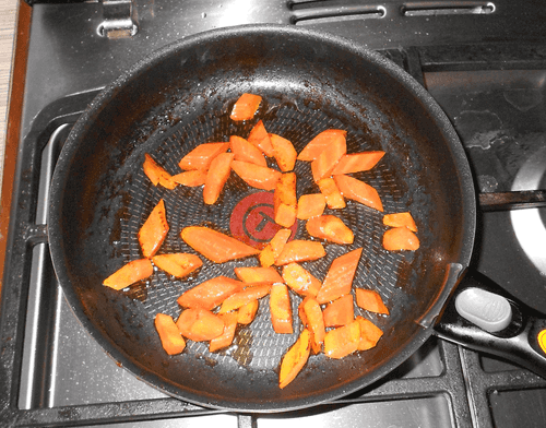Выложить в сковородку и немного обжарить. До готовности доводить не нужно.