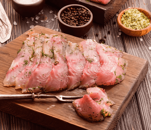 Малосольный карп — это классическое блюдо русской кухни, которое сочетает в себе нежность свежей рыбы и пикантность специй. Исторически малосольная рыба была популярна среди рыбаков и крестьян, поскольку ее легко приготовить и она долго сохраняет свежесть. Карп, пропитанный ароматами соли, сахара, перца и водки, приобретает насыщенный вкус с тонкими сладковато-пряными нотками. После суток маринования филе становится мягким, сочным и идеально подходит для сервировки с черным хлебом, зеленью или свежими овощами. Это блюдо можно подать как закуску на праздничный стол или использовать в традиционных русских трапезах. Малосольный карп — прекрасный пример того, как простые ингредиенты превращаются в изысканное угощение.