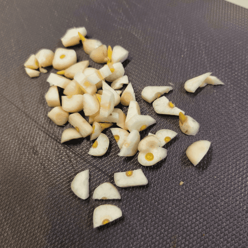 Крупно нарезать чеснок.
