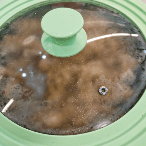 Накрыть крышкой и тушить около 3-5 минут на медленном огне.