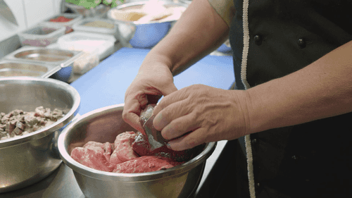 Сердце, легкие, печень и рубец положить под проточную воду на 1,5 часа. Освободить субпродукты от кровавых сгустков, пленок и жилок.