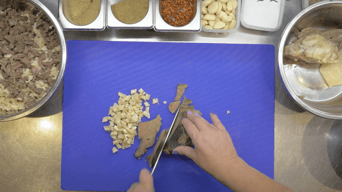 Готовые субпродукты остудить и нарезать кубиком.