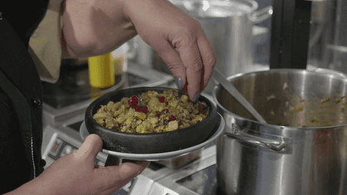 Соединить обжаренный лук и субпродукты и перемешать.