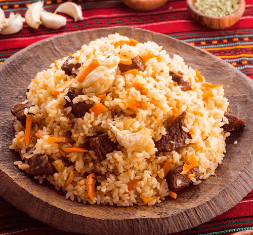 Плов по-узбекски — это сердце узбекской кухни, пропитанное ароматами специй и традицией веков. Этот блюдо берет свое начало в древности, когда караванщики готовили сытные и питательные блюда в казане, позволяющие сохранить силы во время долгих переходов. Богатый вкус плова раскрывается благодаря сочному мясу, сладковатой моркови и насыщенному аромату зиры и барбариса. Особенность этого плова — тщательная последовательность приготовления, где каждый ингредиент раскрывает свой вкус на разных этапах. Подается горячим, его едят с руками, наслаждаясь каждым зернышком пропитанного масла риса. Он идеально сочетается с свежими овощами и зеленью, дополняя трапезу восточным колоритом. Узбекский плов — это не просто еда, а символ гостеприимства и щедрости, который объединяет семьи и друзей за одним столом.