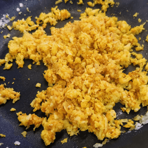 Цветную капусту натереть на крупной терке.