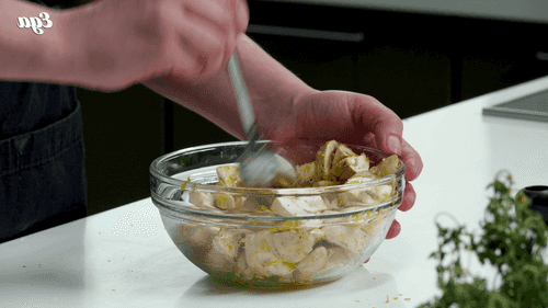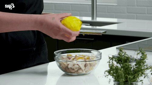 Смешать грибы с цедрой и грибами. Посолить, поперчить. Отставить в сторону.