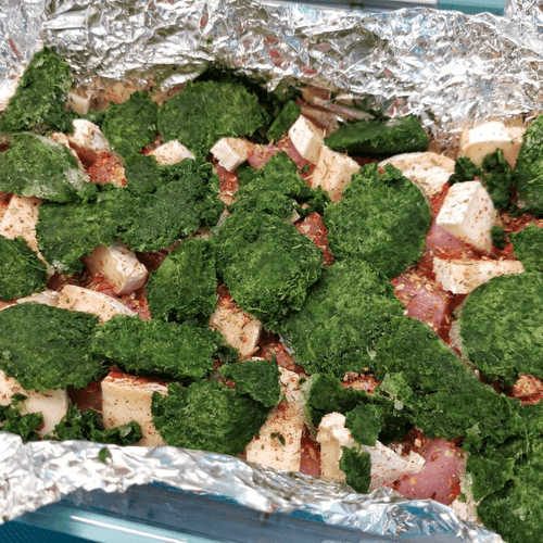 Выложить сверху измельченный шпинат. Посолить.