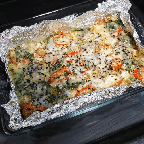 Накрыть сверху фольгой и отправить в разогретую до 180 градусов духовку на 40 минут.