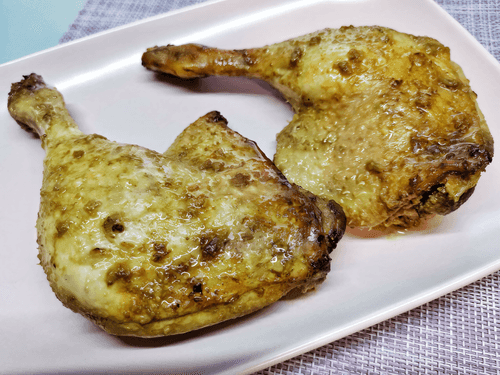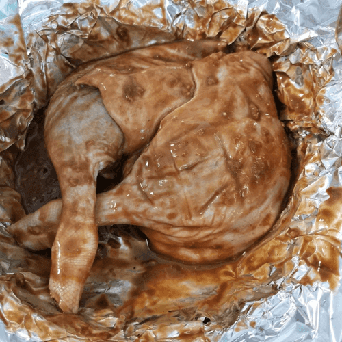Окорочка обильно смазать маринадом и накрыть фольгой. Оставить мариноваться на 1 час при комнатной температуре.
