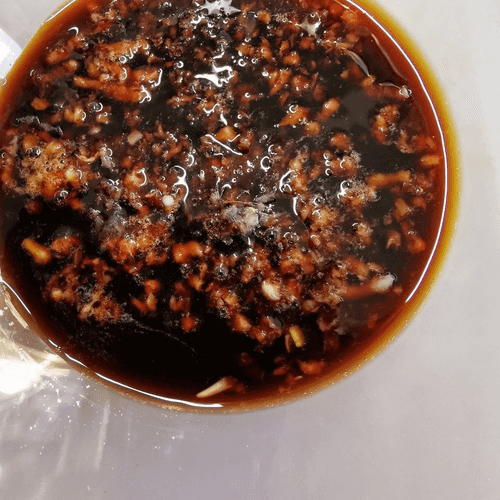 Смешать в миске соевый соус, масло и выдавленный через пресс чеснок.