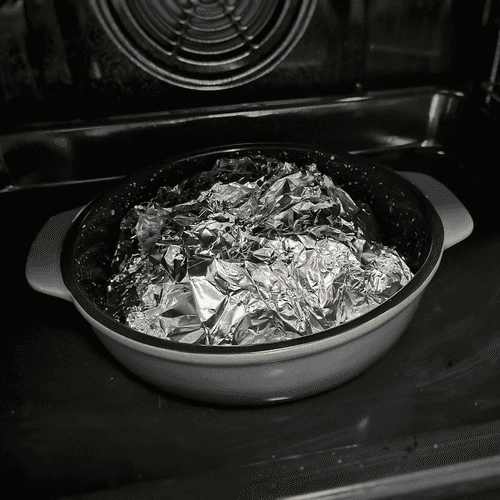 Затем отправить в разогретую до 200 градусов духовку на 40 минут. Затем снять верхнюю шапку фольги и готовить еще 10 минут. Далее подержать в выключенной духовке еще около 5 минут.