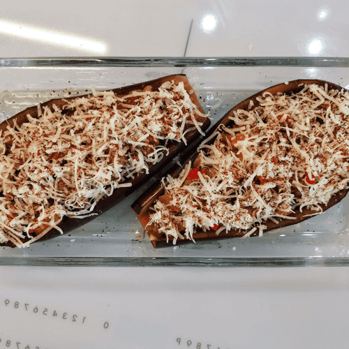 В половинки баклажанов выложить начинку.