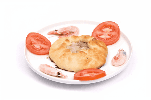 На середину лепешек положить столовую ложку фарша и защипать края теста, придавая ему форму ватрушки.