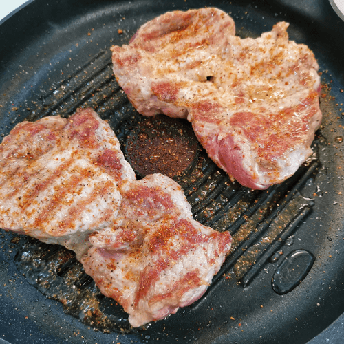 Стейки выложить на смазанную маслом разогретую сковороду-гриль.