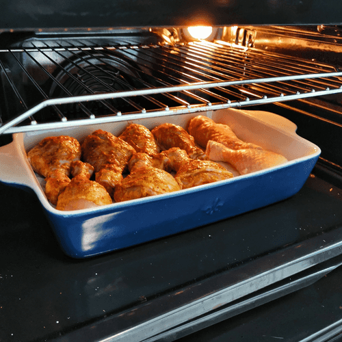 Соль высыпать в жаропрочную форму и сверху выложить ножки.