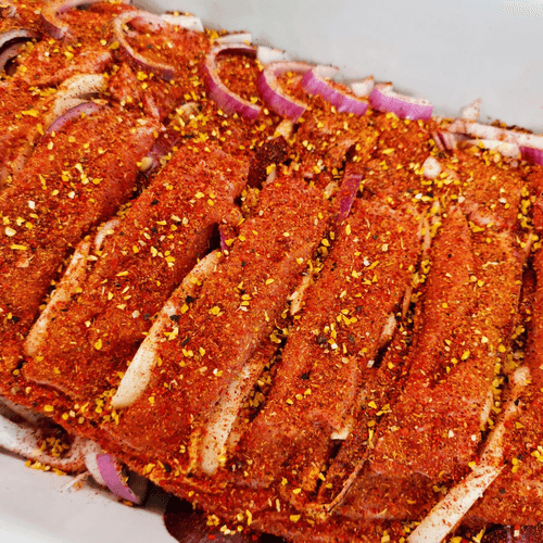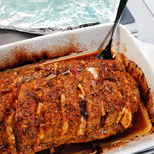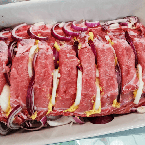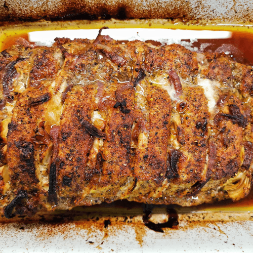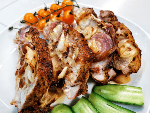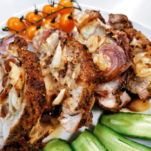Свиная шея, запеченная с луком и специями