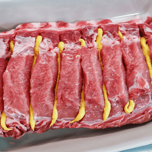 Сделать глубокие надрезы на расстоянии около 1,5 см друг от друга, немного не доходя до нижней части мяса.