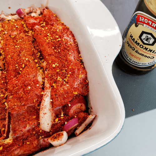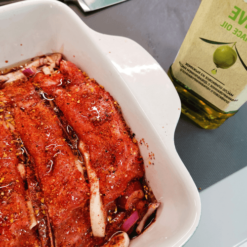 Это блюдо удивляет богатством вкусов и ароматов, которые создаются благодаря луку, соевому соусу, аджике, чесноку, горчице и имбирю. В рецепте указана крупная морская соль, однако при отсутствии таковой вполне можно использовать обычную, изменив количество по своему усмотрению, опираясь на свои предпочтения.