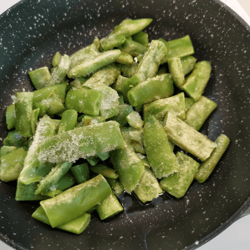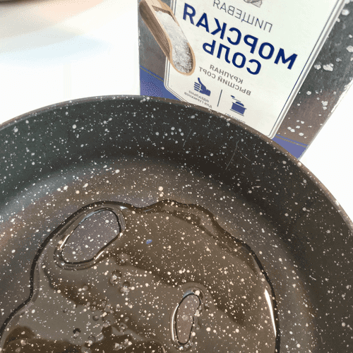 Разогреть на сковороде оливковое масло и добавить пару щепоток крупной соли.