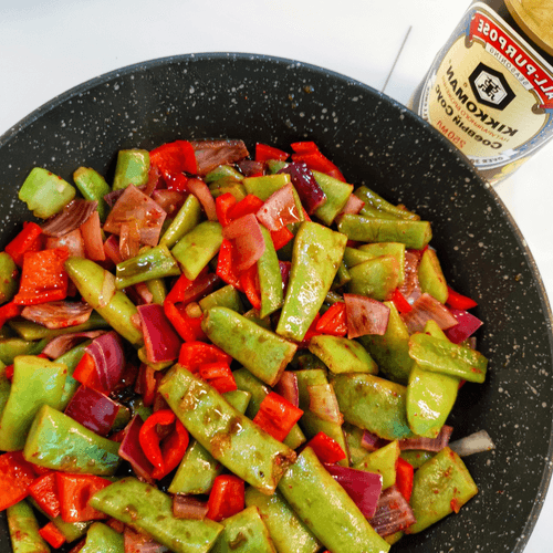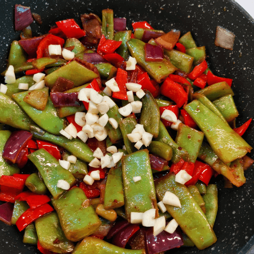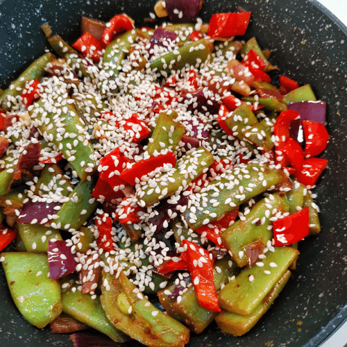 Овощное рагу с луком и чесноком – это яркое и насыщенное блюдо, созданное с вдохновением на здоровую и ароматную еду. Корни такого рагу можно найти в средиземноморской кухне, где свежие овощи, оливковое масло и пряности играют ключевую роль. Вкус у него многогранный: сладковатая нотка перца рамиро сочетается с легкой остротой чили, нежностью фасоли и пикантностью чеснока. Добавление соевого соуса придает блюду насыщенный умами-оттенок, а кунжут добавляет приятную текстуру. Такое рагу идеально подходит как самостоятельное блюдо или как гарнир к мясу и рыбе. Подавать лучше теплым, наслаждаясь его богатым вкусом и сочной консистенцией.