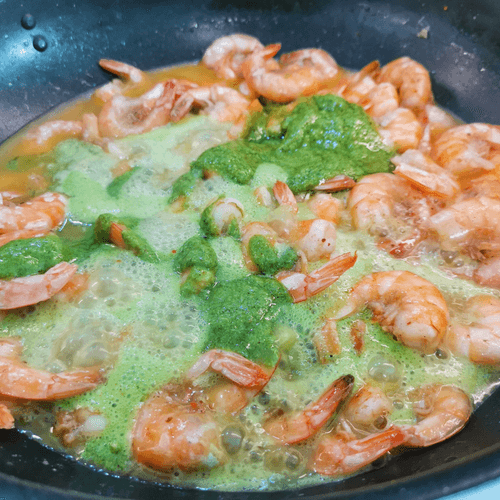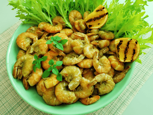 Жареные креветки в базиликовом соусе