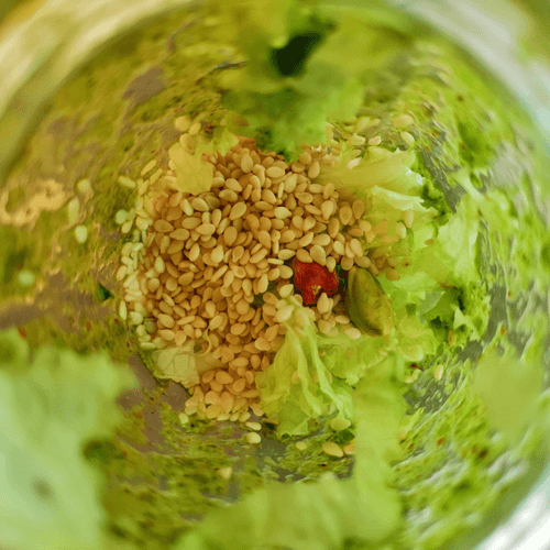 Добавить кунжут и фисташки. Взбить до однородной консистенции.