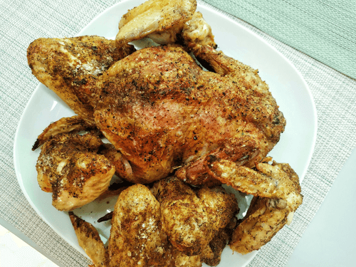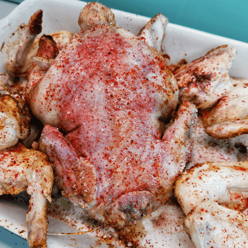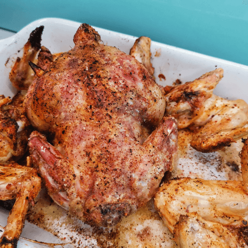 Этот авторский рецепт курицы в специях на солевой подложке восходит к древним традициям приготовления мяса на минералах, что придает блюду особый аромат и текстуру. Соль служит не только основой, но и методом естественной консервации, а специи — уцхо-сунели, сумах, карри и перец чили — создают богатый букет вкусов с легкими восточными нотками. Запеченная курица приобретает сочность и хрустящую корочку, а легкий привкус специй делает ее идеальной для уютного семейного ужина. Важно аккуратно отряхнуть лишнюю соль перед подачей, чтобы сохранить баланс вкуса. Блюдо отлично сочетается с свежими овощами и травами, а также с нежными соусами на основе йогурта или сметаны.