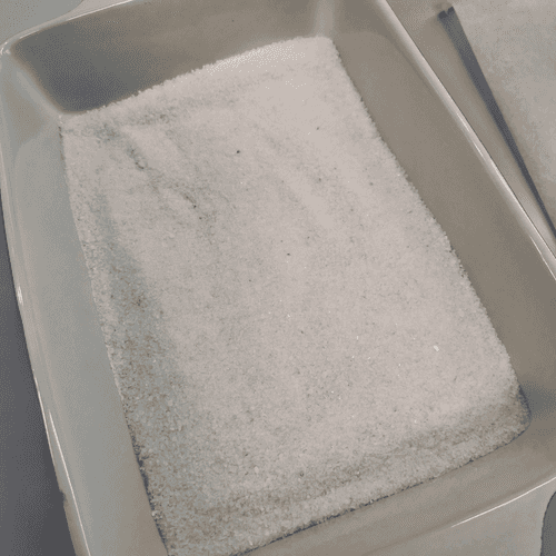 Переложить на блюдо, слегка отряхнув от лишней соли ножом или вилкой.