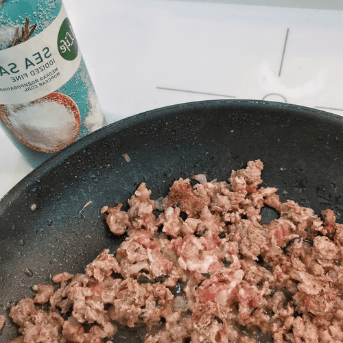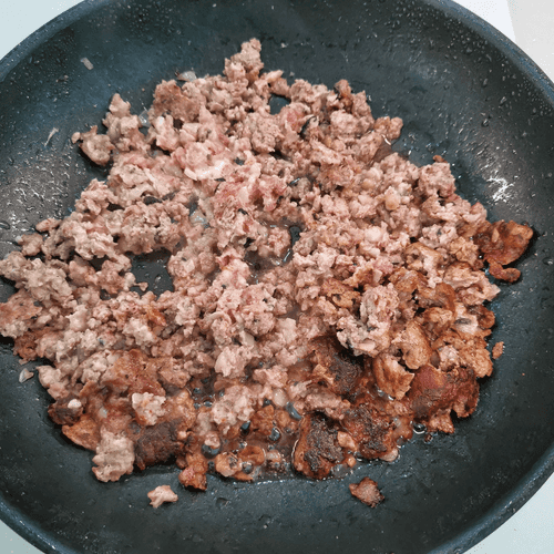 Фарш выложить в подогретое на сковороде масло. Обжарить на сильном огне.
