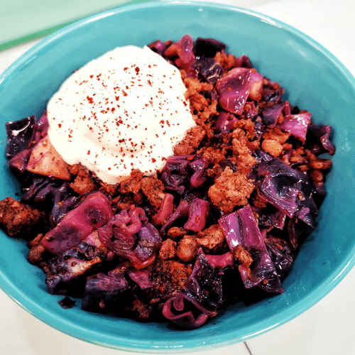 Солянка из краснокочанной капусты с фаршем — это необычное авторское блюдо, объединяющее насыщенность вкуса мяса и свежесть капусты. Исторически солянка ассоциируется с русской кухней, но этот вариант отличается оригинальностью благодаря использованию краснокочанной капусты, придающей блюду приятную сладковатую нотку и аппетитный цвет. Свиной фарш, подрумяненный на сильном огне, обогащается специями и паприкой, создавая глубокий аромат. Смесь перцев добавляет пикантность, а сметана смягчает вкус, делая его более нежным. Подача с перцем чили добавляет приятную остроту. Это сытное и уютное блюдо идеально подходит для семейного обеда или ужина, прекрасно сочетается с ржаным хлебом и свежими травами. В нем гармонично сочетаются простота приготовления и оригинальный вкус, который порадует любителей насыщенных и колоритных блюд.