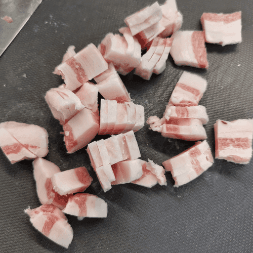 Сало нарезать небольшими кусочками около 2 см в длину.