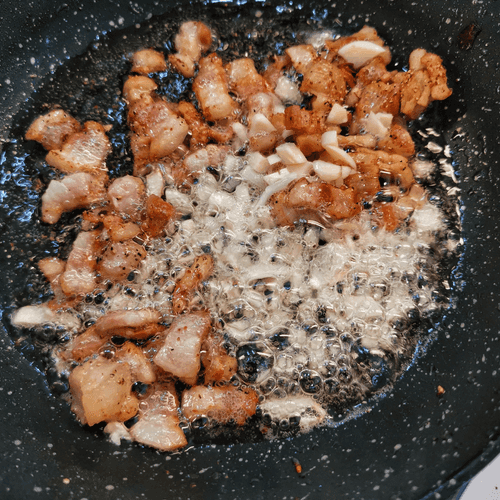 Перед подачей добавить в блюдо шкварки с чесноком.