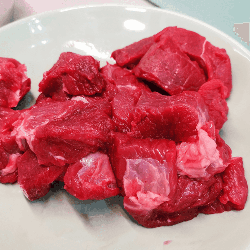 Говяжью мякоть нарезать кубиками.