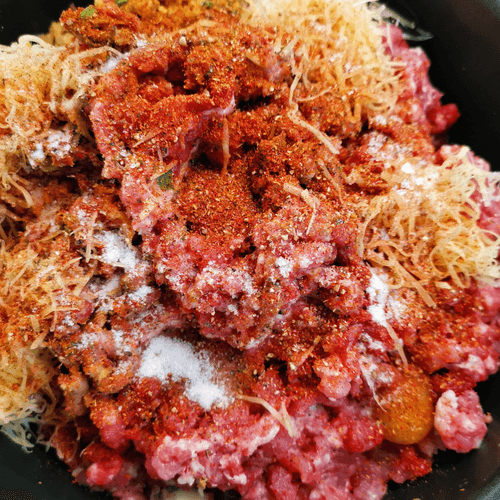 Фарш интенсивно перемешать руками.