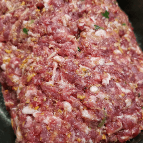 Прокрутить мясо через мясорубку вместе с грибами, базиликом и чесноком.