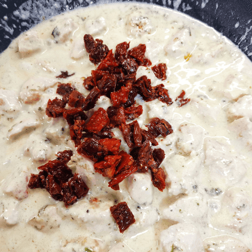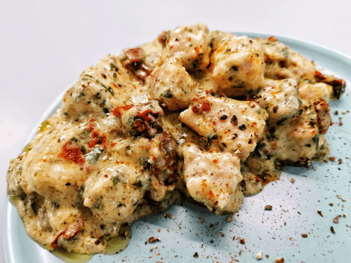 Индейка, обжаренная в сливках с сыром и шпинатом — это нежное, изысканное блюдо, сочетающее мягкость сливок, пикантность пармезана и свежесть шпината. Оно несет в себе элементы средиземноморской кухни, где ценят сочетание легких, но насыщенных вкусов. Сливки придают индейке бархатистую текстуру, а сыр — легкую солоноватость и глубину. Вяленые томаты добавляют немного кислинки, подчеркивая естественный вкус мяса. Этот рецепт идеален как для повседневного ужина, так и для праздничного стола, а его простота приготовления делает его доступным даже для начинающих кулинаров. Подается горячим, прекрасно сочетается с легкими гарнирами или хрустящим багетом.