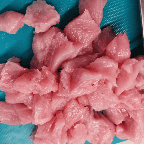 Индейку нарезать небольшими кубиками.