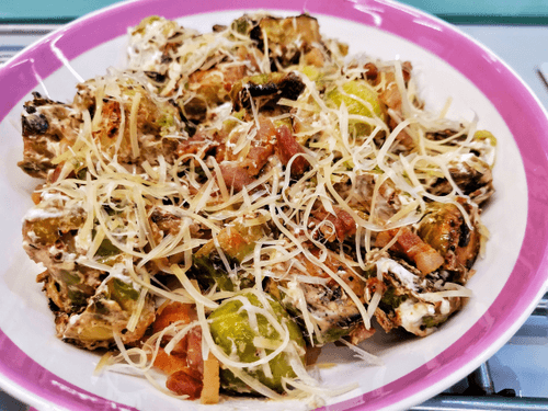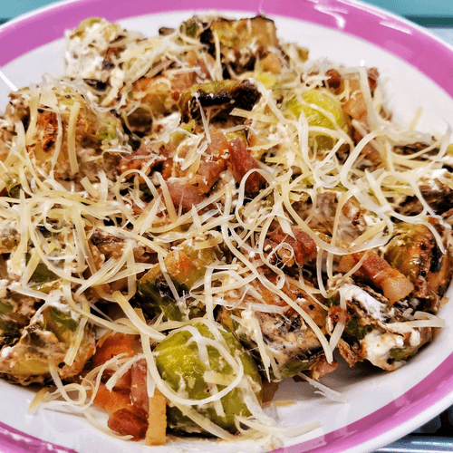 Жареная брюссельская капуста с беконом и сыром