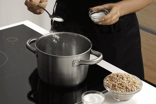 Хорошо промыть крупу. Вскипятить в большой кастрюле воду (2 стакана воды на 1 стакан крупы). Добавить сахар, 0,5 чайной ложки соли. Выложить в кипящую воду крупу, вода должна покрывать ее на 2–3 см. Варить 30 минут или до тех пор, пока жидкость не впитается.