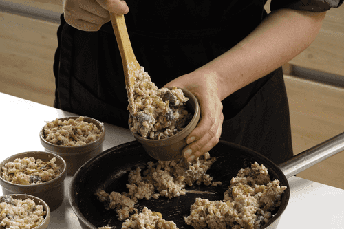 Посолить, поперчить и переложить в порционные горшочки.