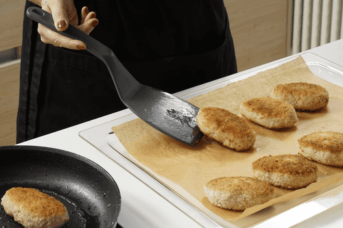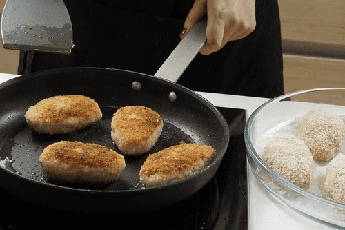 Обжарить котлеты на растительном масле с двух сторон. Готовить их в течение 4–5 минут, пока не появится красивая корочка.