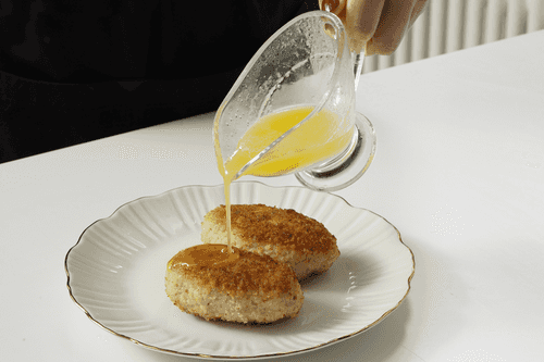 Растопить оставшееся сливочное масло. При подаче на стол полить котлеты растопленным сливочным маслом.
