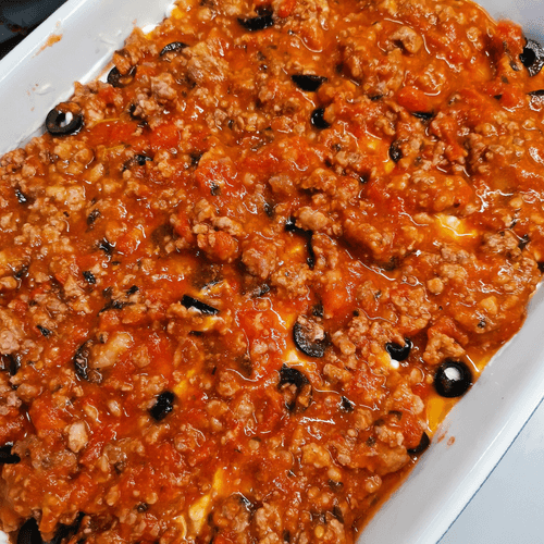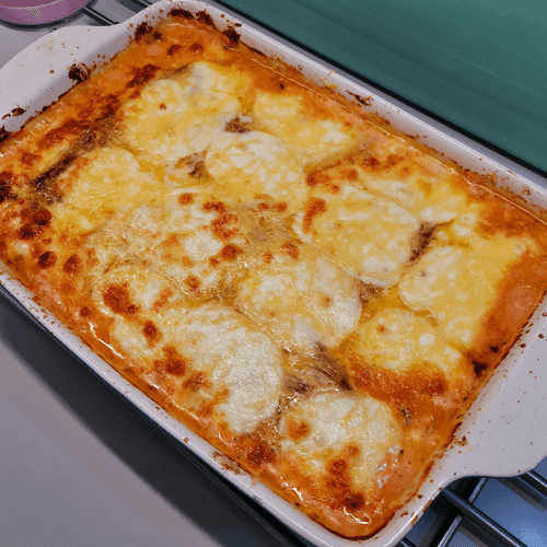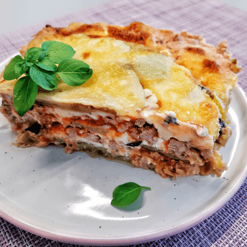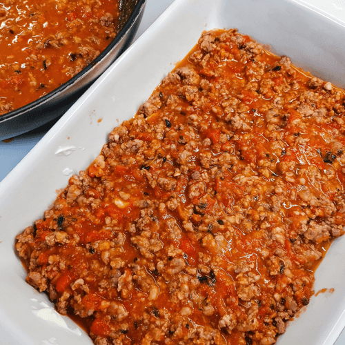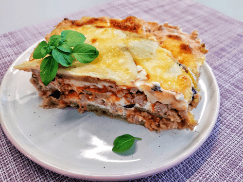 Мясная лазанья из баклажана и помидоров