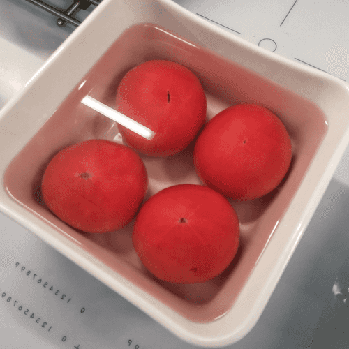 Помидоры залить кипятком.