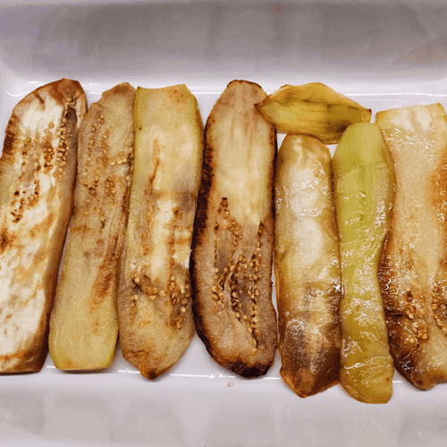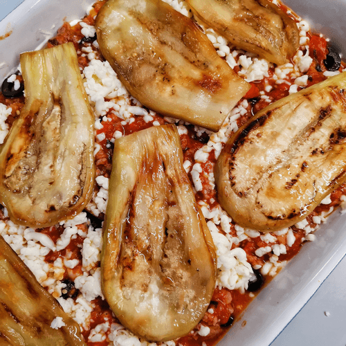 Выложить сверху слайсы баклажана.