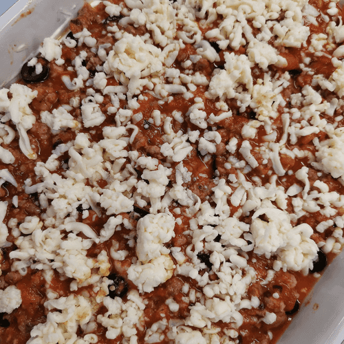 Присыпать тертой моцареллой для пиццы.