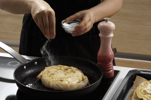Слегка приправить щепоткой соли, молотым черным перцем. Повторить действия со всеми стейками, добавляя сливочное масло.